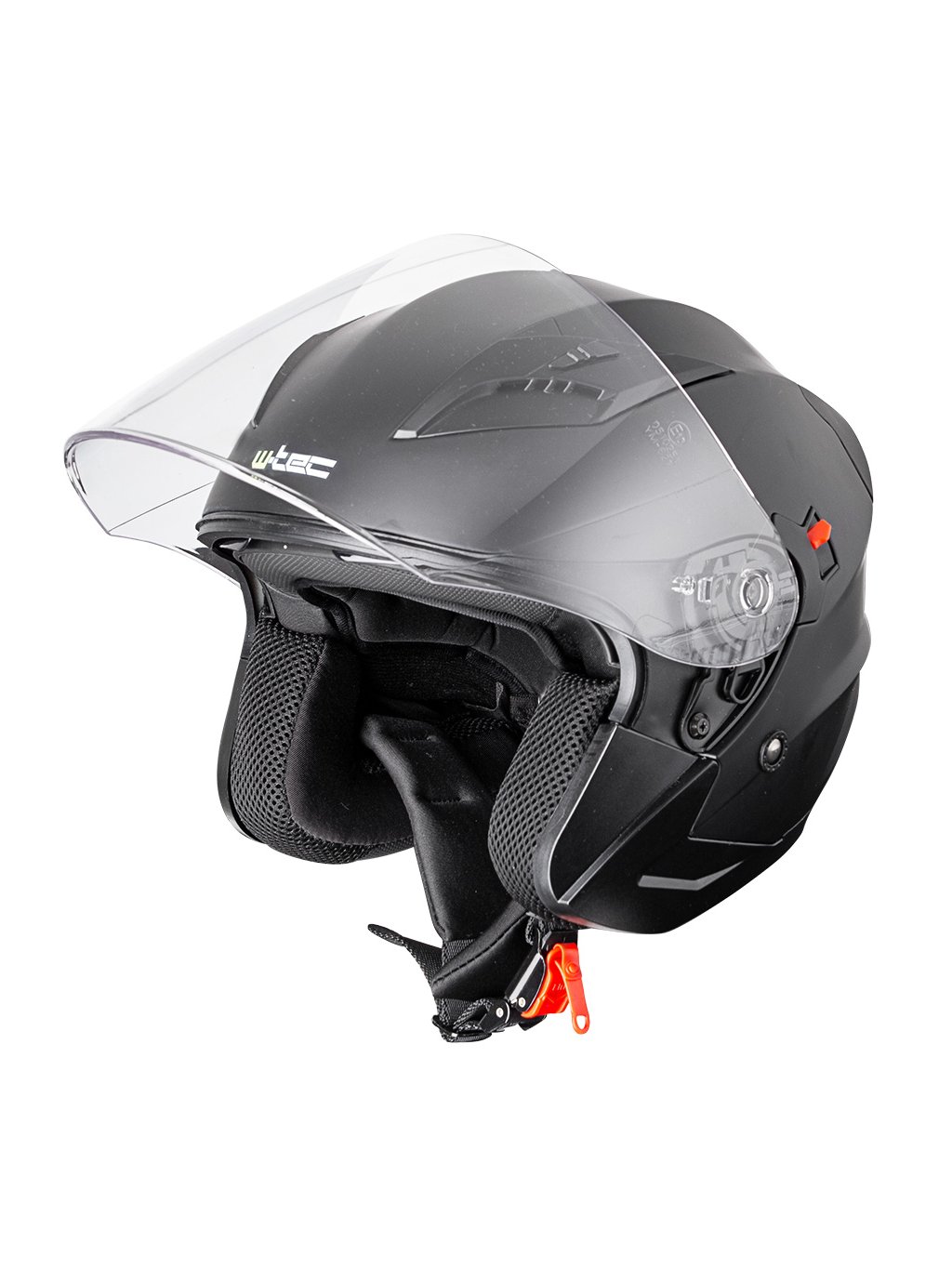 Moto přilba W-TEC Putta je moderní otevřená helma určená k jízdě na skútrech i pomalejších cestovních motocyklech. Má široké odklopné hledí doplněné o samostatně výsuvnou sluneční clonu, která chrání proti ostrému slunečnímu záření během jízdy. Tu lze pohodlně ovládat z vnějšku pomocí páčky na boku helmy.