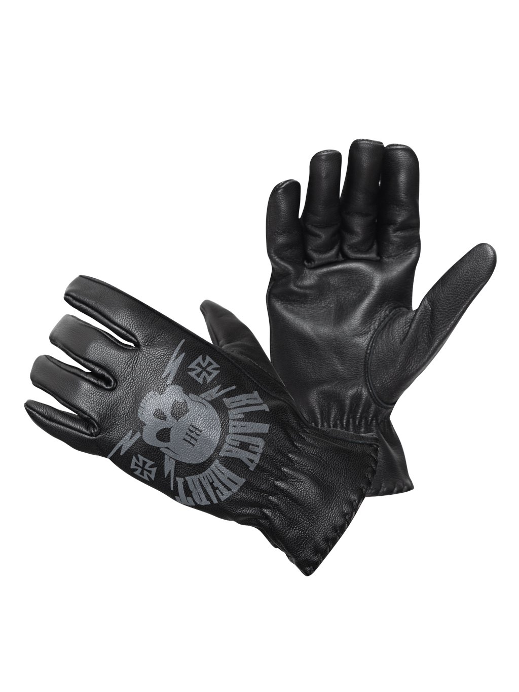 Kožené moto rukavice Black Heart Skull Gloves - černá