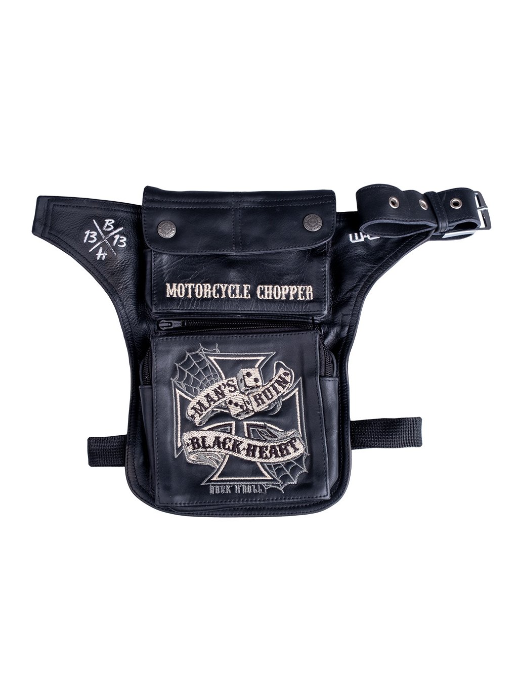 Stehenní kapsa W-TEC Man's Ruin je praktická přídavná externí kapsa z pravé hovězí kůže, kterou lze jednoduše připevnit na stehno. Na jejím originálním grafickém zpracování se značka W-TEC spojila s českým progresivním designérským brandem Black Heart. Našité motorkářské motivy tady tvrdí muziku! Opasek je také vyroben z kůže a pro nastavení velikosti využívá kovových přezek a pevnostních oček a je doplněn o textilní pásek na stehnu. Tato kapsa bude nápomocná pro rychlý přístup k dokladům, telefonu, peněžence, nářadí a podobně.