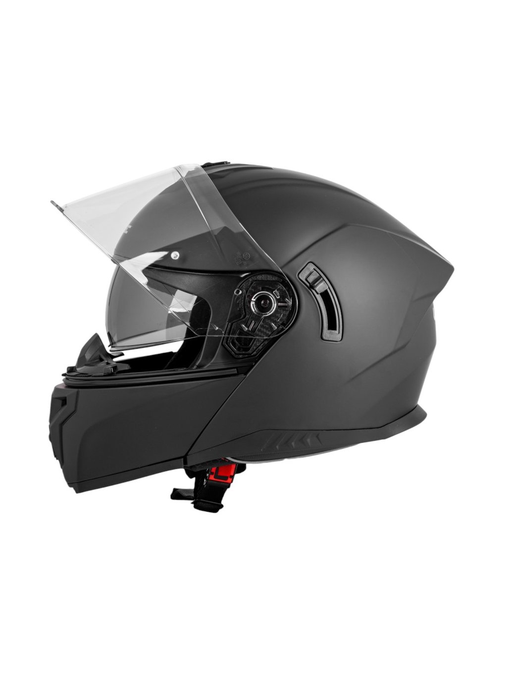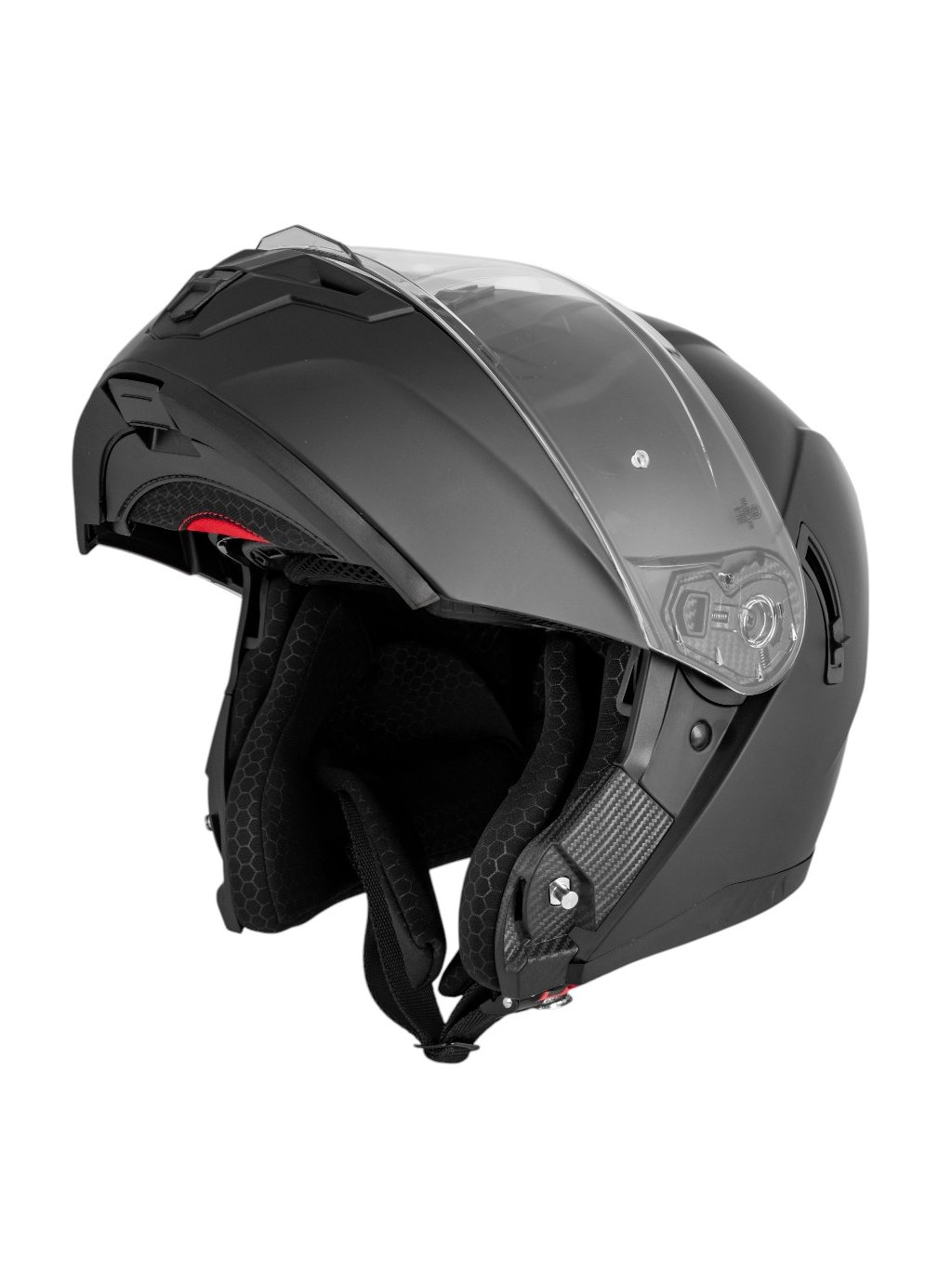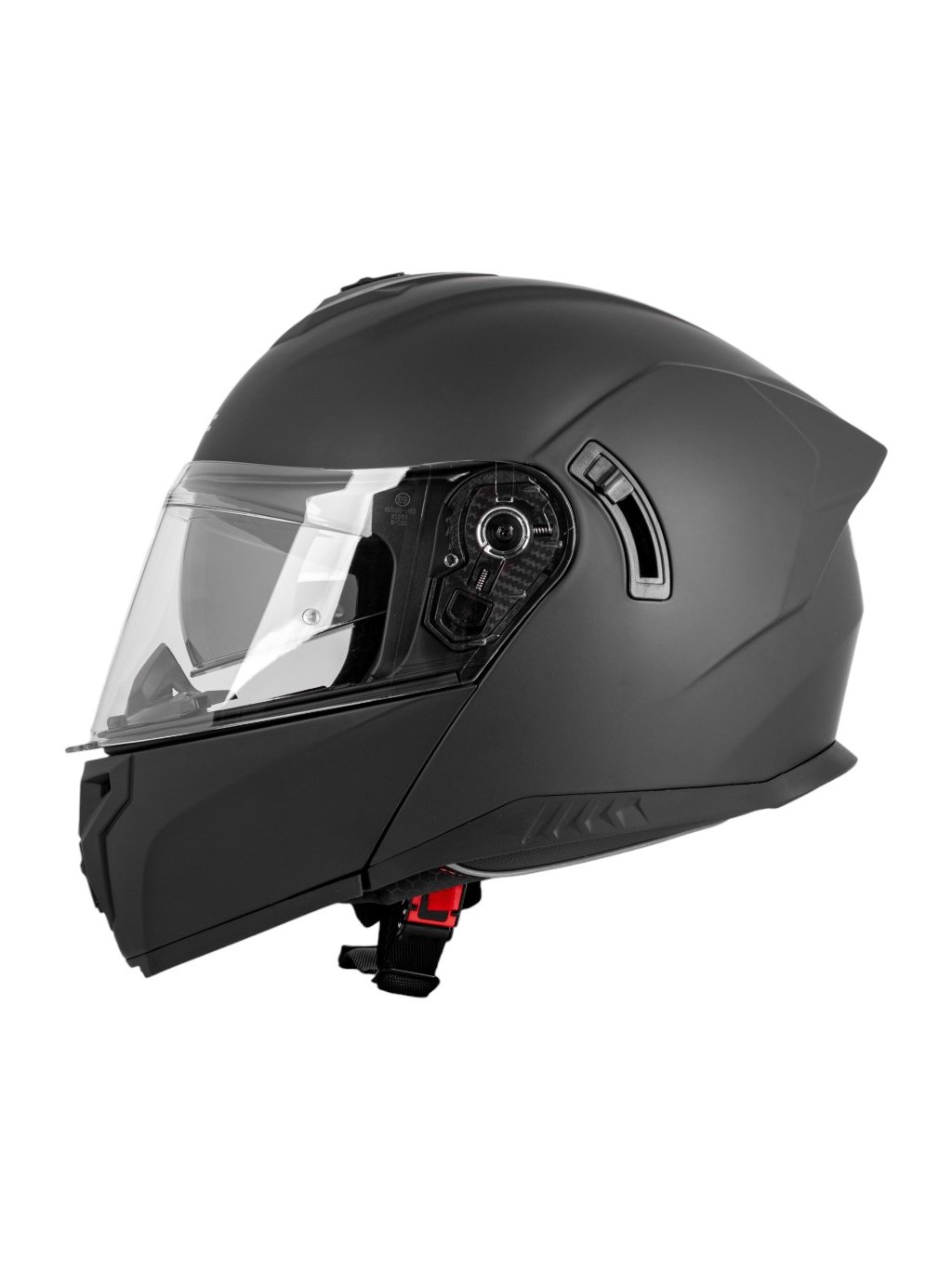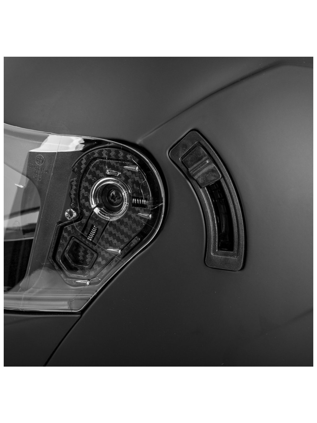 Má odklopné hledí i celou bradovou část, která je zajištěna na kovové zámky. Plexi je vybavené přípravou pro Pinlock® folii. To vše je doplněné o samostatně výsuvnou sluneční clonu, která chrání proti ostrému slunci v průběhu jízdy. Lze ji pohodlně a intuitivně ovládat z vnějšku pomocí mechanismu na boku helmy.