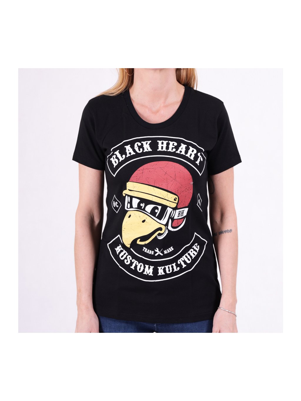 Dámské triko BLACK HEART WOODY je ušité z příjemného bavlněného materiálu, prezentuje se decentním střihem respektujícím tvar ženského těla, takže se "nosí úplně samo" a nabízí tak perfektní volbu pro volný čas. Díky kvalitnímu potisku s rebelskými motivy však nejlépe sedne k motorkářskému stylu. Ukaž tedy, k jaké partičce patříš.