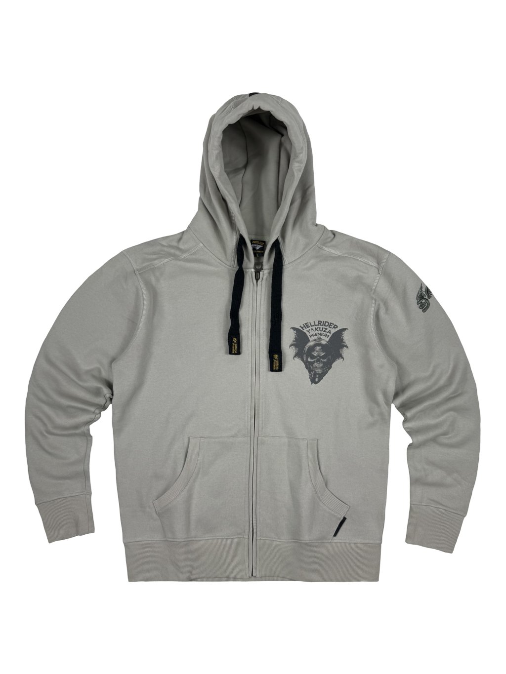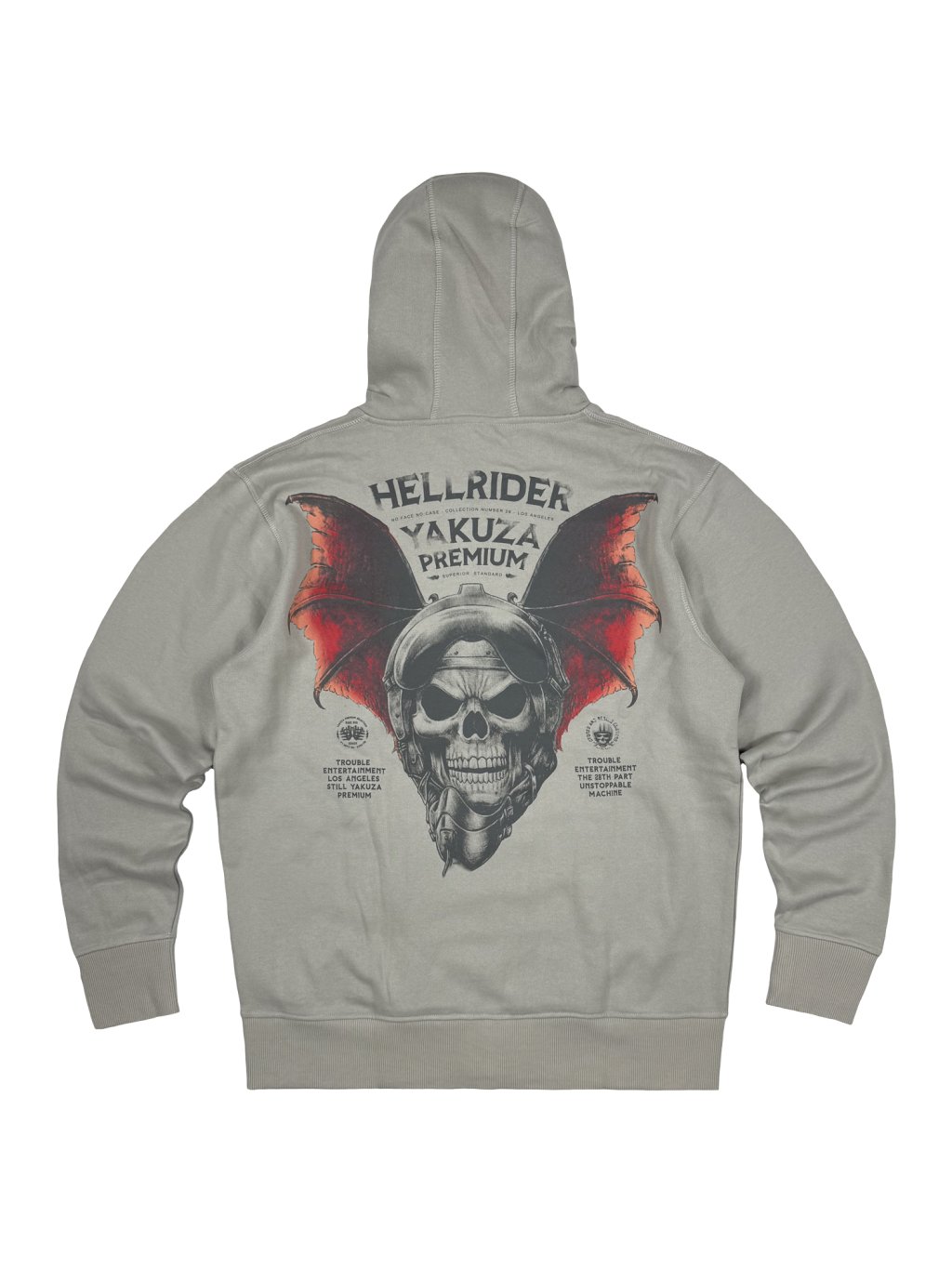 Mikina YAKUZA PREMIUM s delším rovným střihem je vybavena dvěma kapsami na břiše a v přední části je opatřena celorozepínacím zipem. V neposlední řadě disponuje kapucí, kterou lze velikostně upravit pomocí tkaniček. Ty disponují stejně jako většina ostatních částí mikiny potiskem v rebelském stylu.